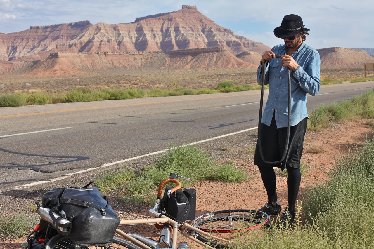 When you buy the best hand-tire pump at the bike store, the last thing you think is that you’re going to meltdown in a gas station parking lot and smash it on the ground. And when Heath is fixing yet another flat, you know he’s seconds from stomping his spokes in but doesn’t because we’re a long way from home. I don’t know what it is, but when you spend hard earned money at a store, and the stuff doesn’t hold up, you just go straight into McEnroe mode. And while you’re grinding your teeth in the heat with grease on your hands, the other guy is holding back his laughter and thanking god he’s not the only one.