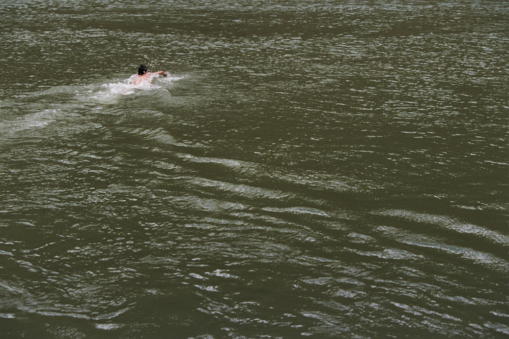 On one of our days off John decided that he’d check off one thing on his “must do” list, he’d swim across the river without a dry suit. At first you think, ya, this sounds rad, totally doable.